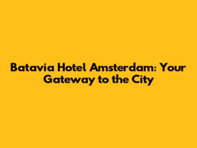 Batavia Hotel Amsterdam: Your Gateway To The City