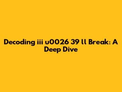 Let's pull this phrase apart. We've got:"iii" (likely not a direct part of the intended meaning, possibly just a typo or some other part of the code) "u0026" (this is the key to understanding the full context) and "39" and "ll break". So, the "u0026" part is particularly intriguing, as this is often used in HTML to represent special characters. In this case, u0026 is followed by 39 which is an apostrophe in HTML encoding. The next part "ll break" is likely the remaining part of the sentence that has not been encoded, as it does not require a special character.