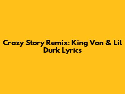 What's up, music lovers! Today, we're diving deep into the Crazy Story Remix featuring the legendary King Von and the one and only Lil Durk. This track is an absolute banger, a true testament to the raw talent and storytelling prowess these artists bring to the table. If you're looking for the lyrics to this iconic remix, you've come to the right place! We're going to break down every bar, explore the narratives, and celebrate the genius of King Von and Lil Durk. Get ready to immerse yourselves in the world of Chicago street rap, where every word paints a vivid picture and every beat hits hard.