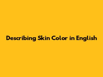 Describing Skin Color: A Helpful Guide