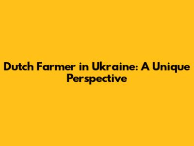 Dutch Farmer In Ukraine: A Unique Perspective