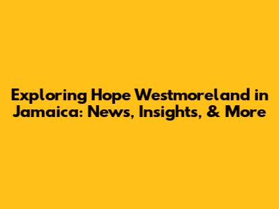 Exploring Hope Westmoreland In Jamaica: News, Insights, & More