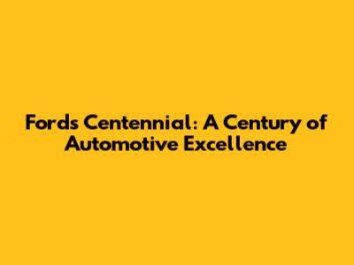 Ford's Centennial: A Century Of Automotive Excellence