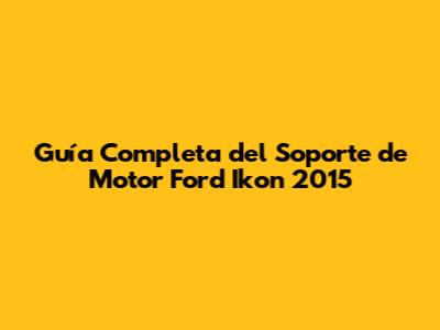 Guía Completa Del Soporte De Motor Ford Ikon 2015