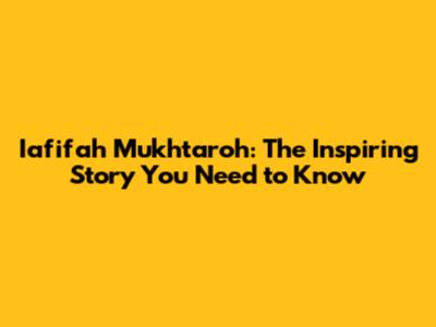 Iafifah Mukhtaroh: The Inspiring Story You Need To Know