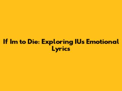 Hey guys! Ever found yourself completely captivated by a song? Like, you're not just listening, you're feeling it deep in your soul? That's the vibe with IU's 'If I'm to Die'. This song isn't just a collection of notes and words; it's a raw, emotional journey that plunges you into the depths of introspection and vulnerability. We're diving deep today to dissect the lyrics, explore the emotions, and really understand what makes this track so darn special. This exploration will cover the themes of mortality, the struggles of life, and the importance of finding meaning even in the darkest moments. I'm going to share some of my favorite lines and break down why they hit so hard. So, buckle up, grab your tissues (you might need them!), and let's get into it!