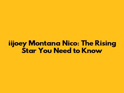 Iijoey Montana Nico: The Rising Star You Need To Know