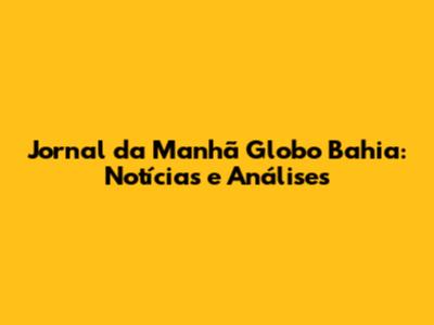 Jornal Da Manhã Globo Bahia: Notícias E Análises