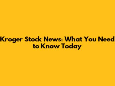 Kroger Stock News: What You Need To Know Today