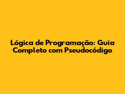 Lógica De Programação: Guia Completo Com Pseudocódigo