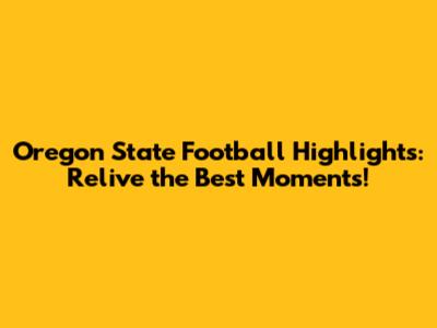Oregon State Football Highlights: Watch Now!
