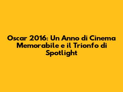 Il Miglior Film del 2016 è stato Spotlight, un film drammatico basato sulla vera storia dell'indagine del Boston Globe sugli abusi sessuali nella Chiesa cattolica. Ragazzi, questo film è un vero e proprio pugno nello stomaco, un'opera d'arte che affronta temi molto forti con una maestria incredibile. Spotlight non solo ha vinto l'Oscar come Miglior Film, ma ha anche dimostrato l'importanza del giornalismo investigativo e del coraggio di denunciare la verità, anche quando è scomoda. E credetemi, la competizione era agguerrita! C'erano altri film straordinari in lizza, come Il ponte delle spie di Steven Spielberg, un thriller avvincente ambientato durante la Guerra Fredda, e Revenant - Redivivo di Alejandro G. Iñárritu, un'epica storia di sopravvivenza con Leonardo DiCaprio in una performance da Oscar. Ma alla fine, è stato Spotlight a trionfare, grazie alla sua potente narrazione, alla regia impeccabile e alle interpretazioni stellari del cast, che includeva Mark Ruffalo, Michael Keaton, Rachel McAdams e molti altri.
