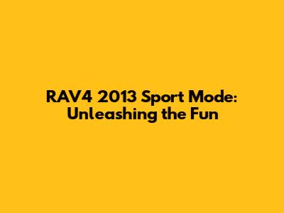 RAV4 2013 Sport Mode: Unleashing The Fun