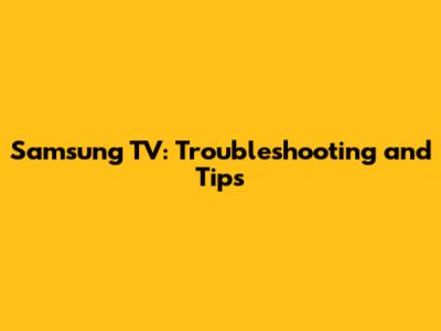 Samsung TV: Troubleshooting And Tips