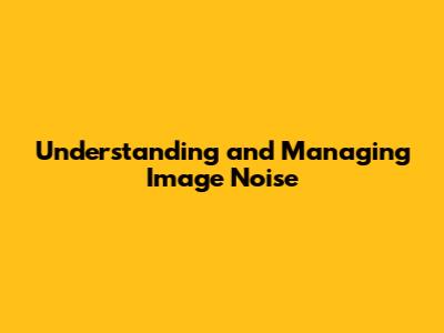 Understanding And Managing Image Noise