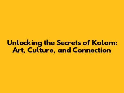 Unlocking The Secrets Of Kolam: Art, Culture, And Connection