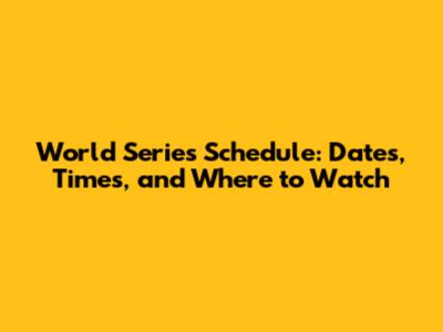 World Series Schedule: Dates, Times, And Where To Watch